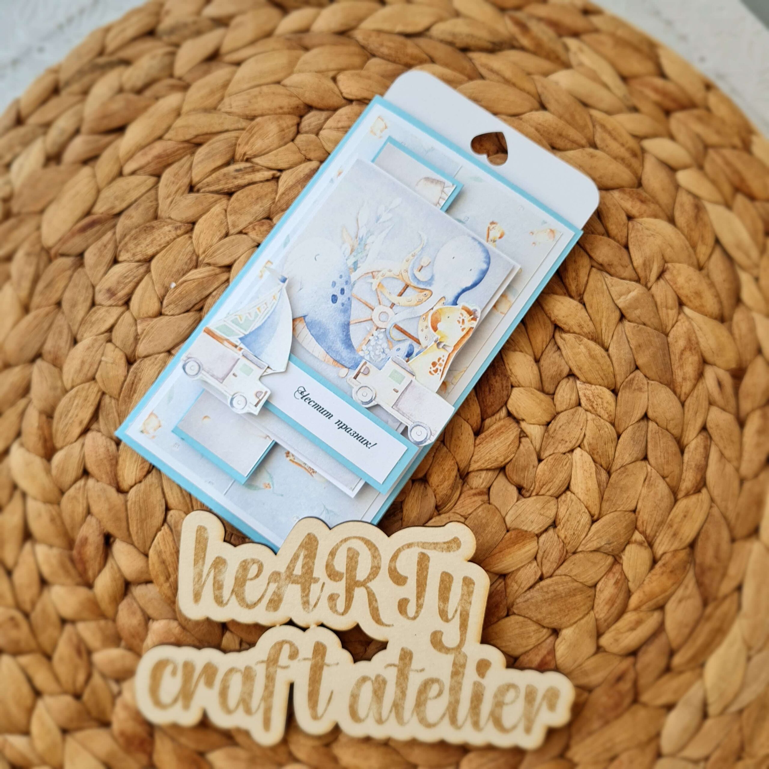Ръчноизработена картичка-плик с място за послание и/или паричен подарък.