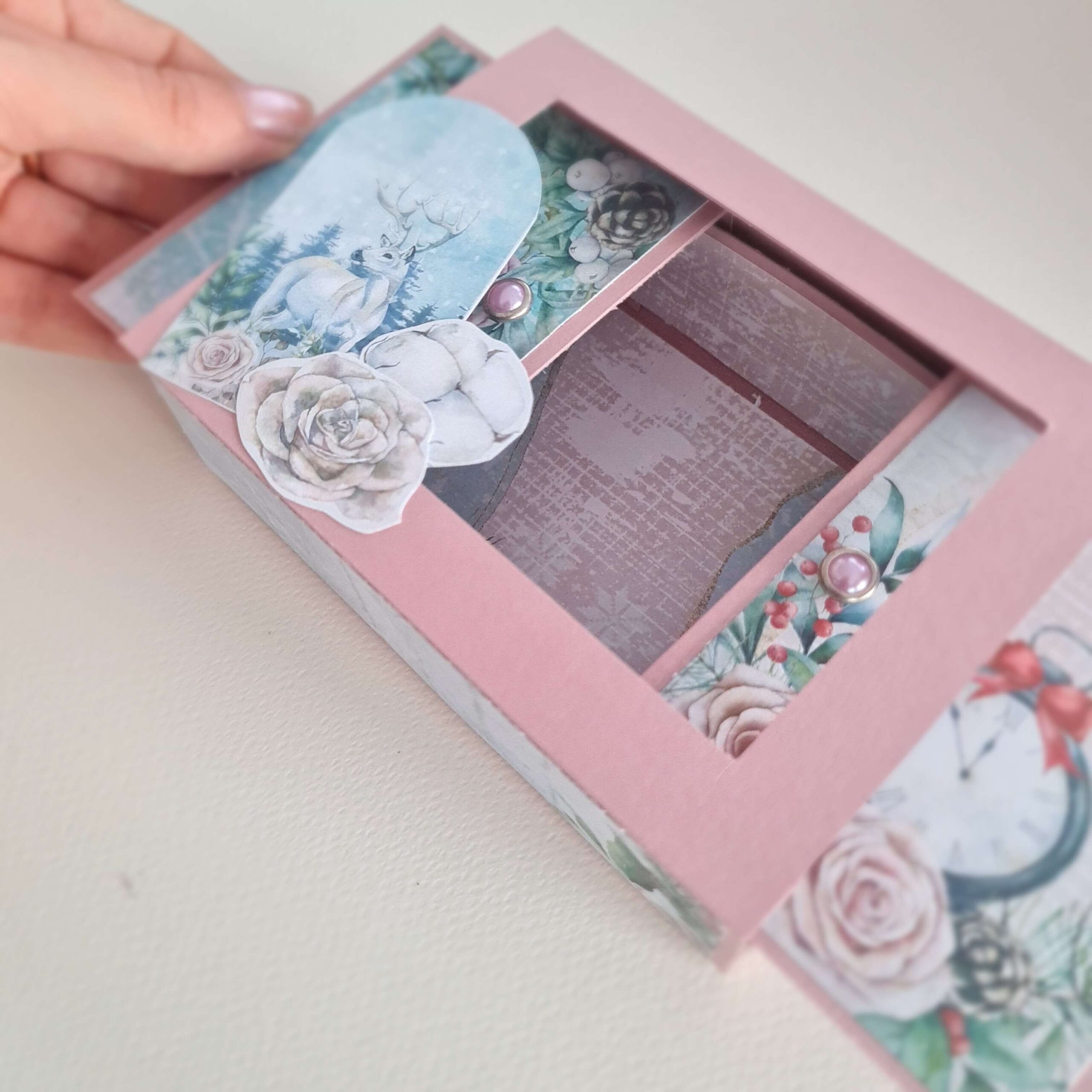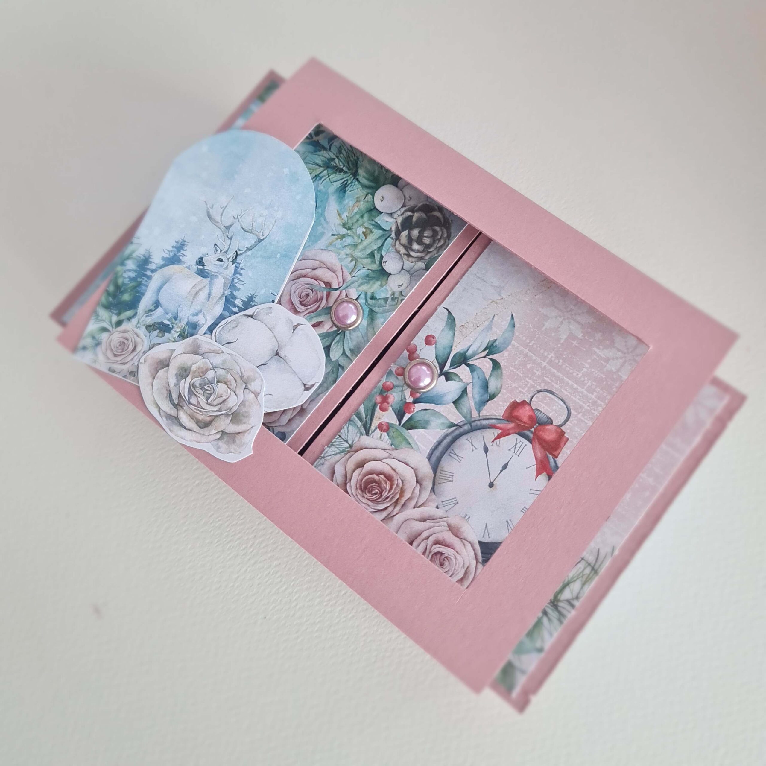 Ръчноизработена от картон, дизайнерска хартия 190гр., подвижни вратички,