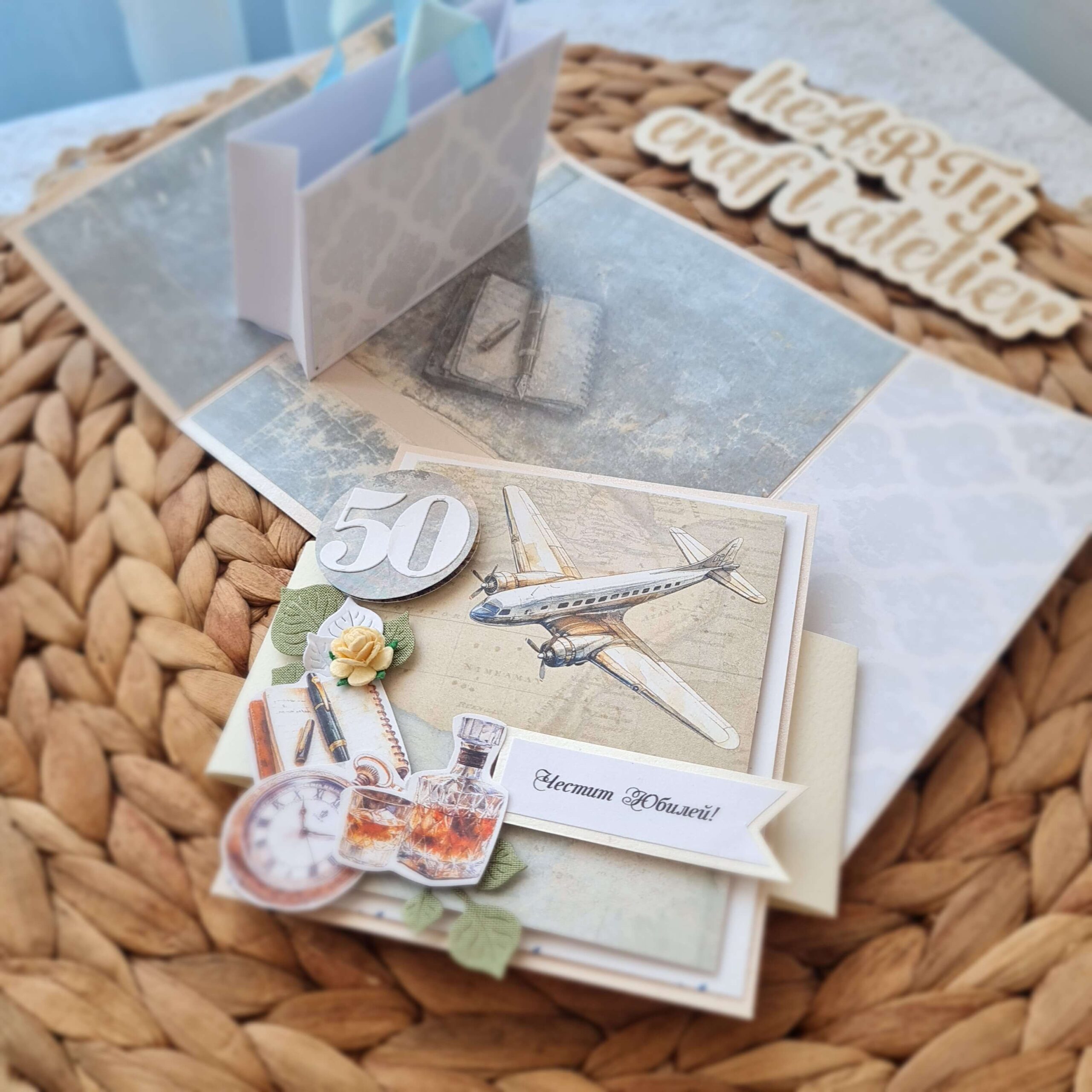 Ръчноизработена мъжка картичка от картон, дизайнерска хартия 190гр,